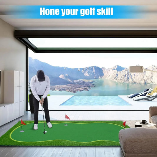 Indoor Golf Putting Mat with Auto-Ball Return, Golf Putting Mat with Leaning Rod Holder