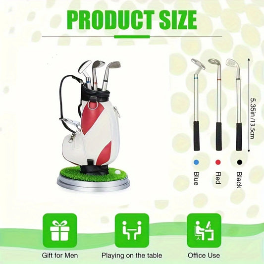 Creative Golf Gift Bag Pen Holder, PU & Zinc Alloy, with 3 Pens, Golf Office Gift Table Accessories, Great for Birthday & Novelt