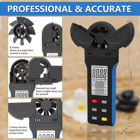 HOLDPEAK Handheld Anemometer with 270º Rotatable Detector & Vane Cover,Digital Wind Speed Gauge Meter,CFM for HVAC Shooting Golf