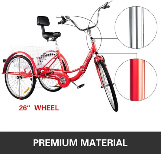 Tricycle Adult 26’’ 3 Wheel Bikes for Adults Three Wheel Bike